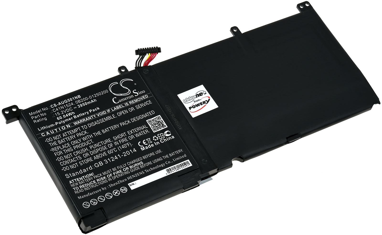 Baterija kompatibel sa Asus Typ C41N1524, Baterija kompatibel sa Asus Typ 0B200-01250200, Gaming-Laptop Asus Rog G501VW-FY124T, Gaming-Laptop Asus Rog G501VW-FY107T, Gaming-Laptop Asus Rog G501VW-BSI7N25, Gaming-Laptop Asus Rog G501VW-FY106T, Gaming-Laptop Asus UX501VW-FY103T, Gaming-Laptop Asus UX501VW, Gaming-Laptop Asus UX501JW, Baterija passend za Gaming-Laptop Asus Rog G501VW-FY106T, Rog G501VW-FY107T, Typ C41N1524 u.a.,