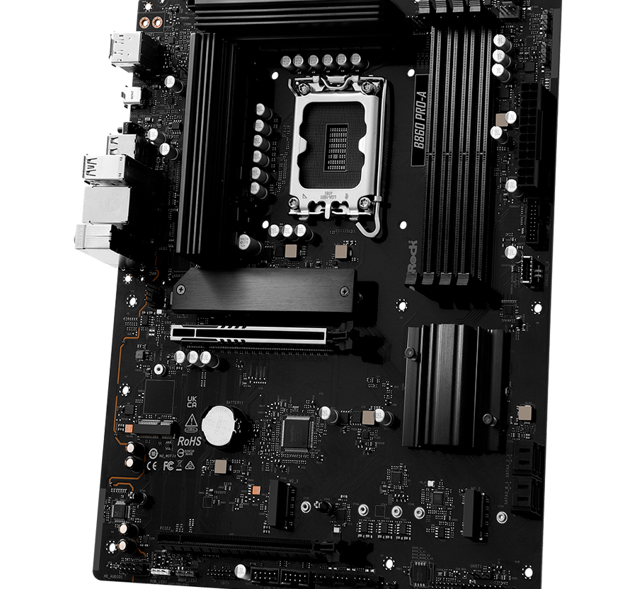 ASROCK MB Desktop B860 PRO-A, S.1851, 4x DDR5, 1x PCIe 5.0 x16, 1x PCIe 4.0 x4, 1x Blazing M.2, 2x Hyper M.2, 4x SATA3, 2x USB-C, 8x USB 3.2, 6x USB 2.0, 1x HDMI, 1x DP, 1x RJ-45 2.5 GB Lan, ATX, 90-MXBRN0-A0UAYZ
