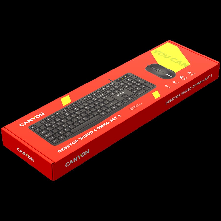 CANYON USB standard KB, water resistant AD layout bundle with optical 3D wired mice 1000DPI black
