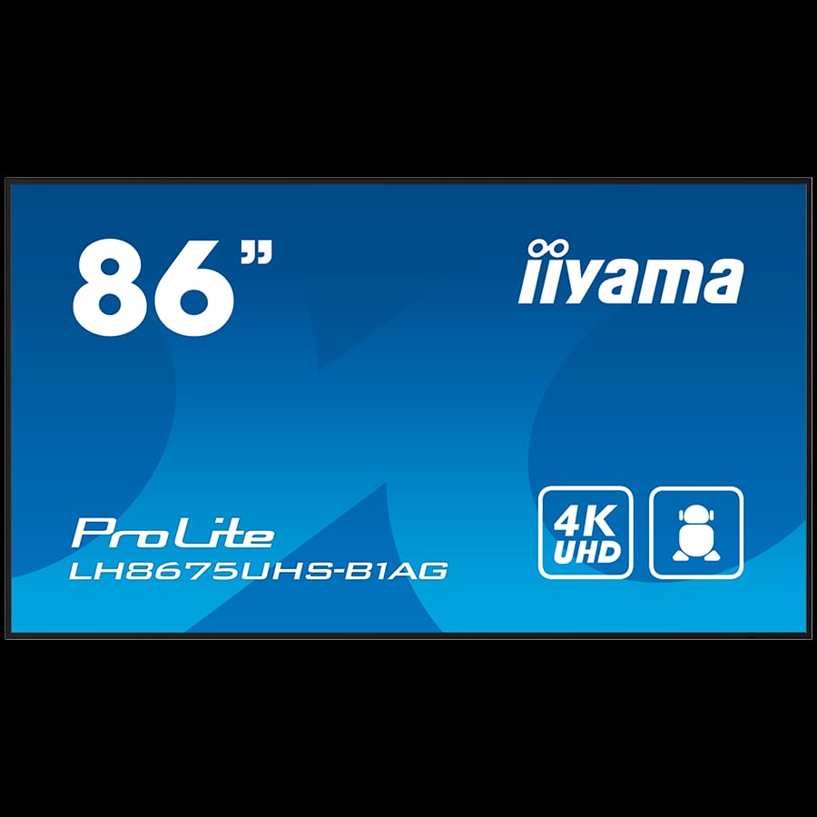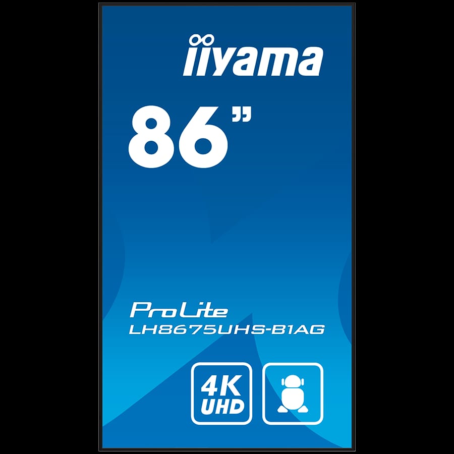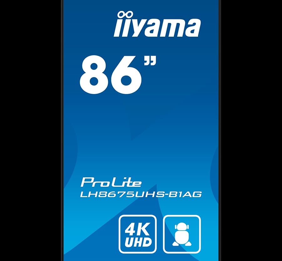 IIYAMA LFD LH8675UHS-B1AG 86″ 4K 24/7 Android OS IPS 16:9 500cd 1400:1 8ms Android 11 OS, iiSignage2, FailOver, EShare landscape, portrait