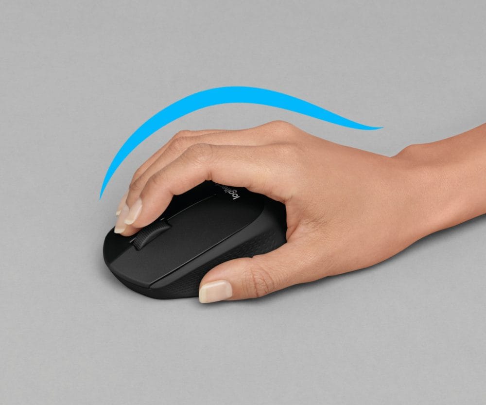 – B330 is a result of Logitech’s expertise and innovative approach designing comfortable solutions for over 25 years. Its asymmetric shape is meticulously crafted to guide your right hand to a natural position, while the soft rubber surface with distinctive patterns improves touch feeling. All that allows you to work or study comfortably for hours.