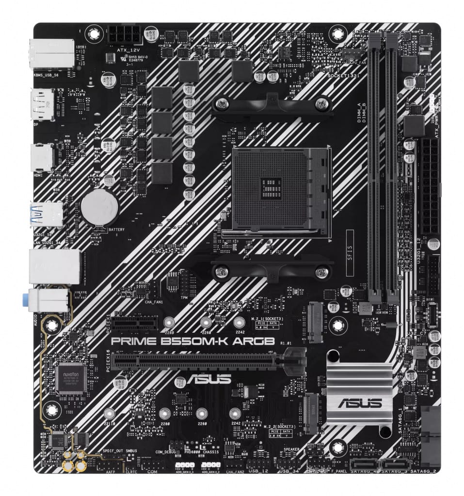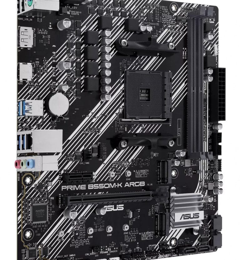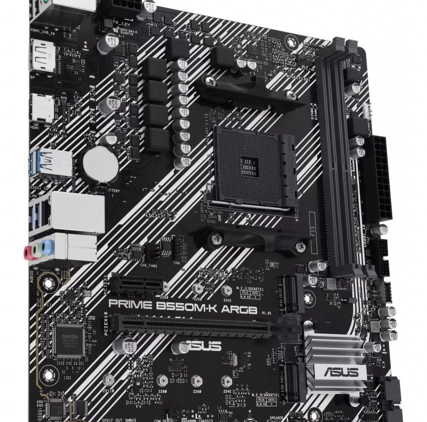 PRIME B550M-K ARGB, AM4, AMD B550, DDR4, Broj utora 2, 2133 – 5100MHz, PCIe 4.0 x16 1, SATA3 4, RAID 0, RAID 1, 8-kanalni audio, 1x 10/100/1000 Ethernet, Display Port 1, mATX, USB 3.2 4