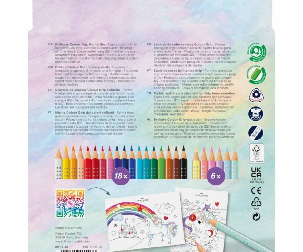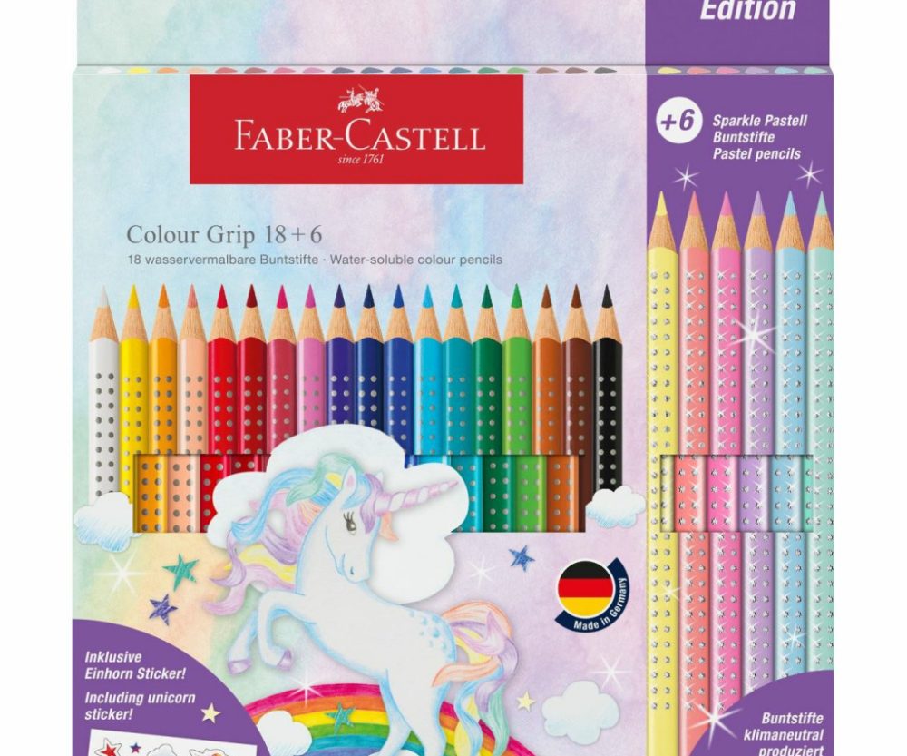 Boje drvene 18boja Grip 2001+6boja drvenih Sparkle pastel Unicorn Faber Castell 201543 blister